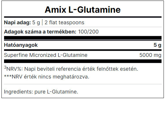 A glutamin adagolása az egyéni igényektől és konkrét céloktól függően változhat. Javasoljuk, hogy kövesse a termék címkéjén található utasításokat, vagy konzultáljon egészségügyi szakemberrel az Ön számára megfelelő adag meghatározásához.