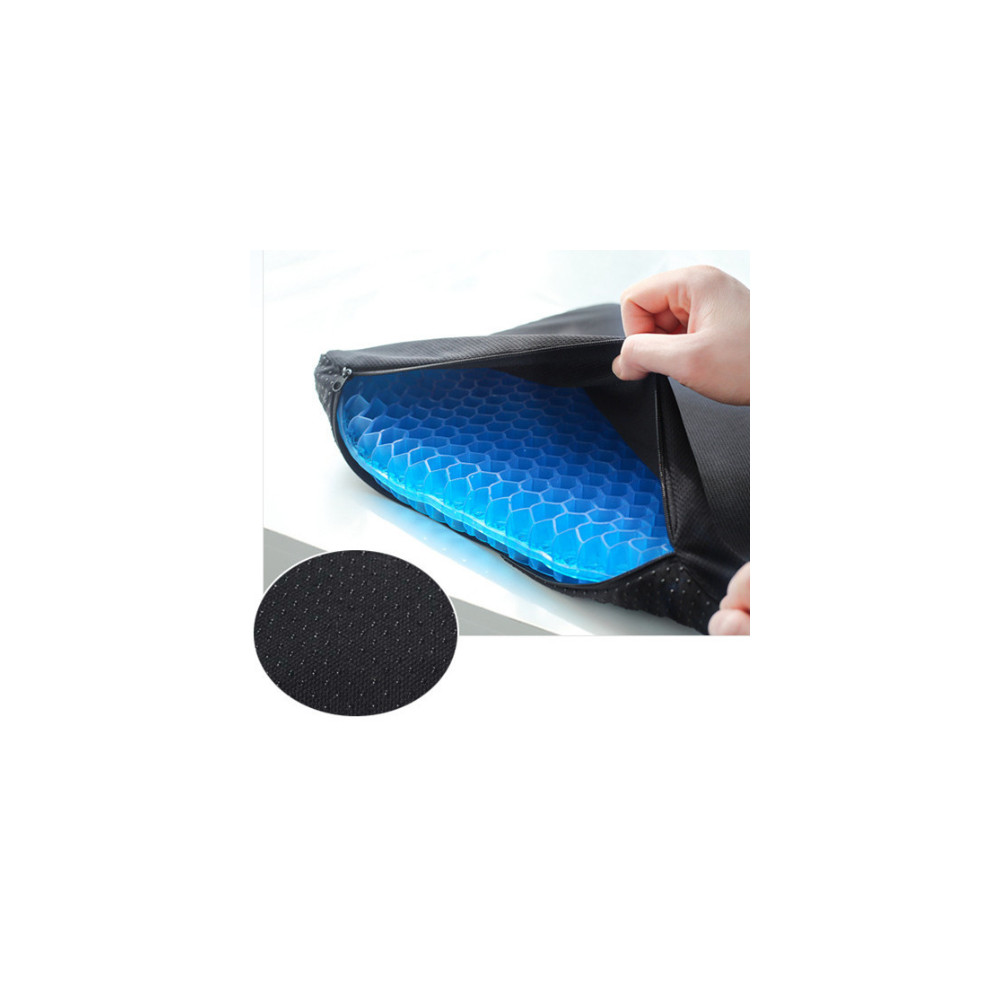 Méhsejtes gélpárna védőhuzattal, amely egyenletesen oszlatja el a terhelést, rugalmas és tartós, jó szellőzést és hőelvezetést biztosít ülés közben. Csúszásgátló alja stabilan tartja, a huzat mosható.