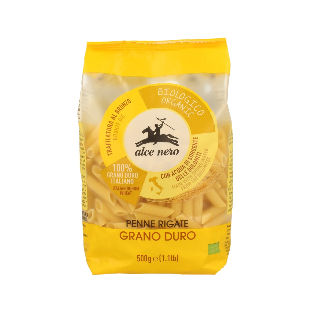 Az Alce Nero organikus durumbúza tésztát kizárólag szerves durumbúzából állítják elő, amelyet Olaszországban termesztenek. A speciális extrudálási eljárás durva felületet biztosít a tészta számára, ami különösen alkalmas a mártások áztatására. Az Alce Nero durum búza tészta többféle formában is kapható: spagetti, penne rigate, fusilli, conchiglie, farfalle és tagliatelle.