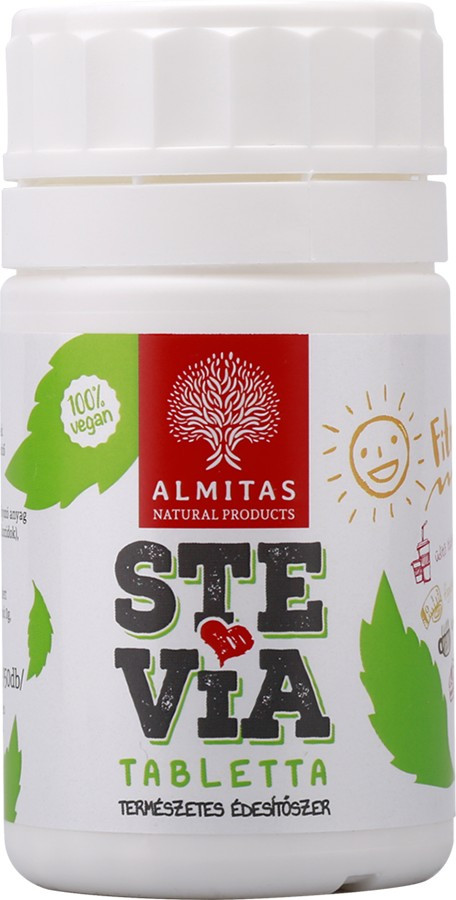 A Stevia édesfű vagy édes levél az őszirózsafélék családjába tartozó évelő növény, mely Dél-Amerikában őshonos és édes leveléről nevezetes fűszer és gyógynövény. Levelei 30-szor édesebbek a répacukornál, kivonatai pedig akár 300-szor is édesebbek tőle. Levelében megtalálható ásványi anyagok a cézium, a magnézium, a kálium, a foszfor, a cink, a vas, a kobalt, és a mangán. Tartalmaz P, A, E, C vitamint, béta-karotint, nikotinsavat, egyedülálló illóolajokat, aminosavakat és pektineket. Fogyasztása esetén nem jelentkezik fogszuvasodás. Intenzív édes íze alkalmassá teszi alacsony szénhidrát bevitelű étrendekben édesítésre. A vércukorszintre nincs hatása, sőt még kissé növeli is a glükóztoleranciát, ezért cukorbetegek számára is használható. Kiválóan alkalmas mindenféle ital édesítésére. Praktikus adagoló dobozban. 600 db tabletta dobozonként. 1 tabletta körülbelül 1 kockacukornak felel meg.