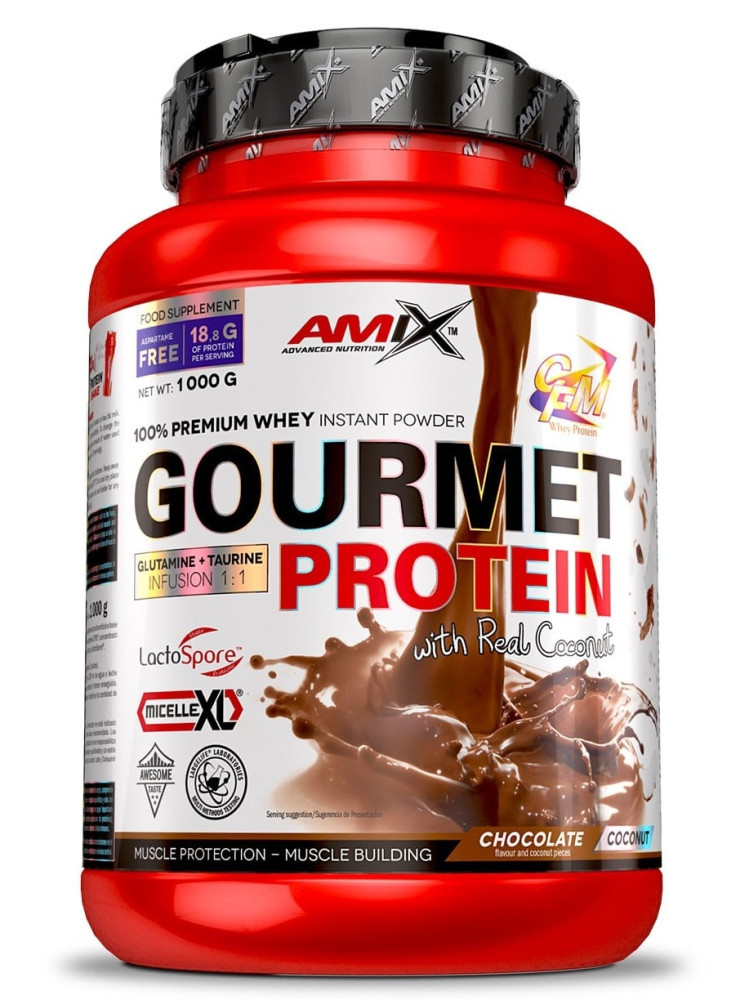 ALACSONY HŐMÉRSÉKLETEN ULTRASZŰRT TEJSAVÓFEHÉRJE Az Amix™ Gourmet Protein egy csúcsminőségű tejsavó-fehérje amely finom ízeivel és maximális minőségével tűnik ki. Ínyenc tejsavófehérje valódi gyümölcsdarabokkal és kókusszal,intant CFM isolatum és Micelle Xl kazeinnel, magas L-glutamin tartalommal és LactoSpore-al. Összetevők (csokoládé-kókusz íz): Amix ™ Protein Blend 75% (ultrafiltered tejsavófehérje-koncentrátum / tejből /, átalakított Micellar Casein / tejből /, instantiált CFM® tejsavóprotein izolátum / tejből / proteinfrakciókkal / Beta-Lactoglobulin, Alfa-laktoglobulin, szérum albumin, immunglobulin, glikomakropeptid, laktoferrin, laktoperoxidáz /), kakaópor, maltodextrin, stabilizátorok: guargumi és xantán; szárított kókuszminta 3,5%, l-glutamin, taurin, emulgeálószer: szójalecitin; aroma, édesítőszerek: szukralóz és aceszulfám K; nátrium-klorid, LactoSpore® (Bacillus coagulans, maltodextrin); Javasolt adagolás: 1 adagolókanál fehérje (30g) 180-250ml vízben vagy zsírszegény tejben elkeverve. Fogyaszd naponta 1-3 alkalommal, az igényeidnek megfelelően.