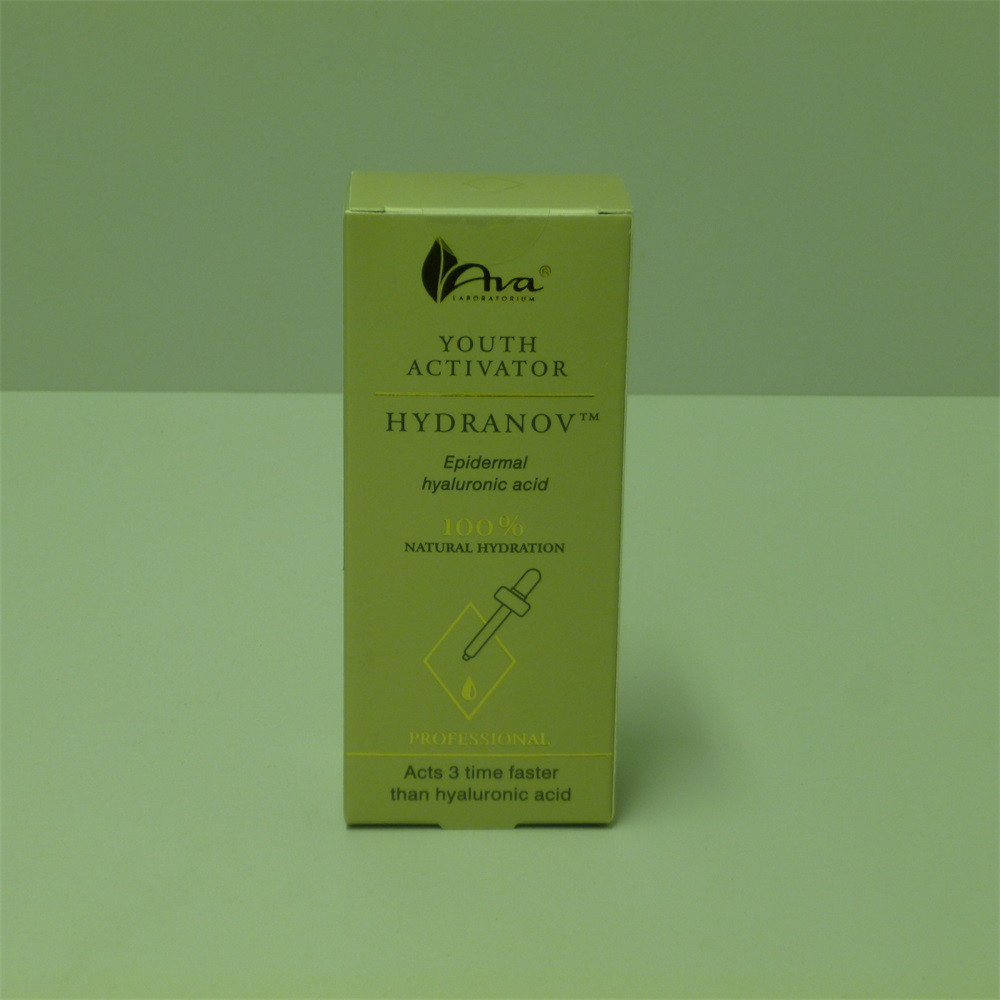 HYDRANOVTM - 3x gyorsabban és hatékonyabban növeli a bőr hidratáltságát, mint a tiszta hyaluronsav. Származása: piros Algae Furcellaria Lumbricalis. Aktivizálja a bőr epidermális rétegében a hyaluronsav természetes szintézisét. Serkenti a bőr valamennyi rétegében a ceramid termelést, megújítja és erősíti a kollagén szövetet, belülről tölti fel a ráncokat. A magas szintű technológiával készült aktív hidratáló koncentrátum megköti és megfogja a bőr mélyebb rétegeiben lévő víz részecskéket, valamint helyreállítja a felhám természetes nedvesség tartalékát, így a felvitel után már 4 órával jelentősen megnő az arc bőrének hidratáltsága, melynek köszönhetően a bőr visszanyeri egészséges színét, ill. rugalmasságát.