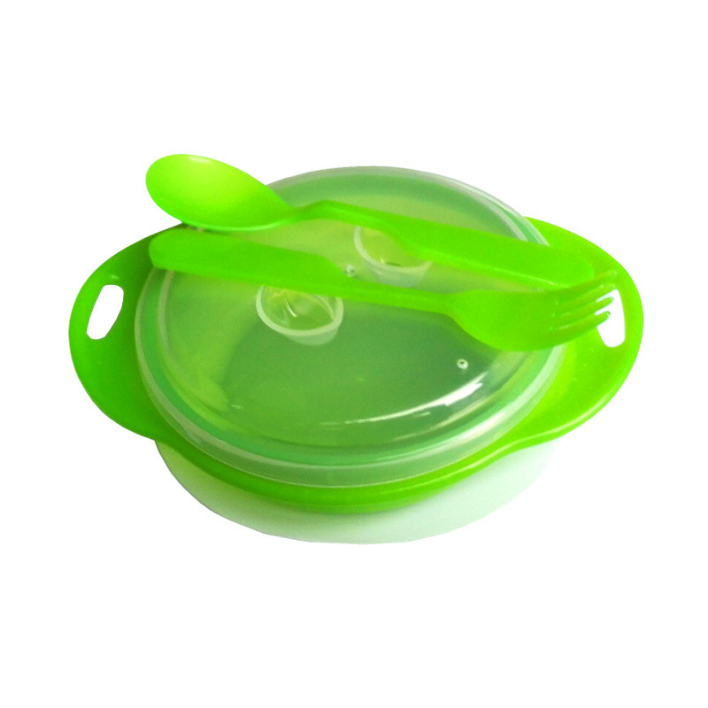 Tapadókorongos tányér, kanállal és villával. Az étel hőmérsékletének függvényében változtatja a színét.