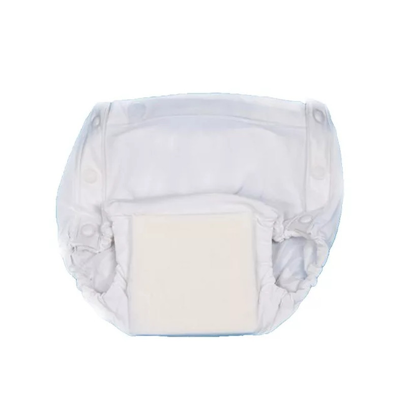 Műanyag, oldalt kapcsokkal záródó pelenkázónadrág textilpelenkához. A terpeszbetétes megoldás megelőzi a kötött csípőízület kialakulását.