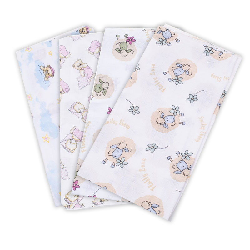 Nyomott mintás, tetra típusú textilpelenka édes színes figurákkal.