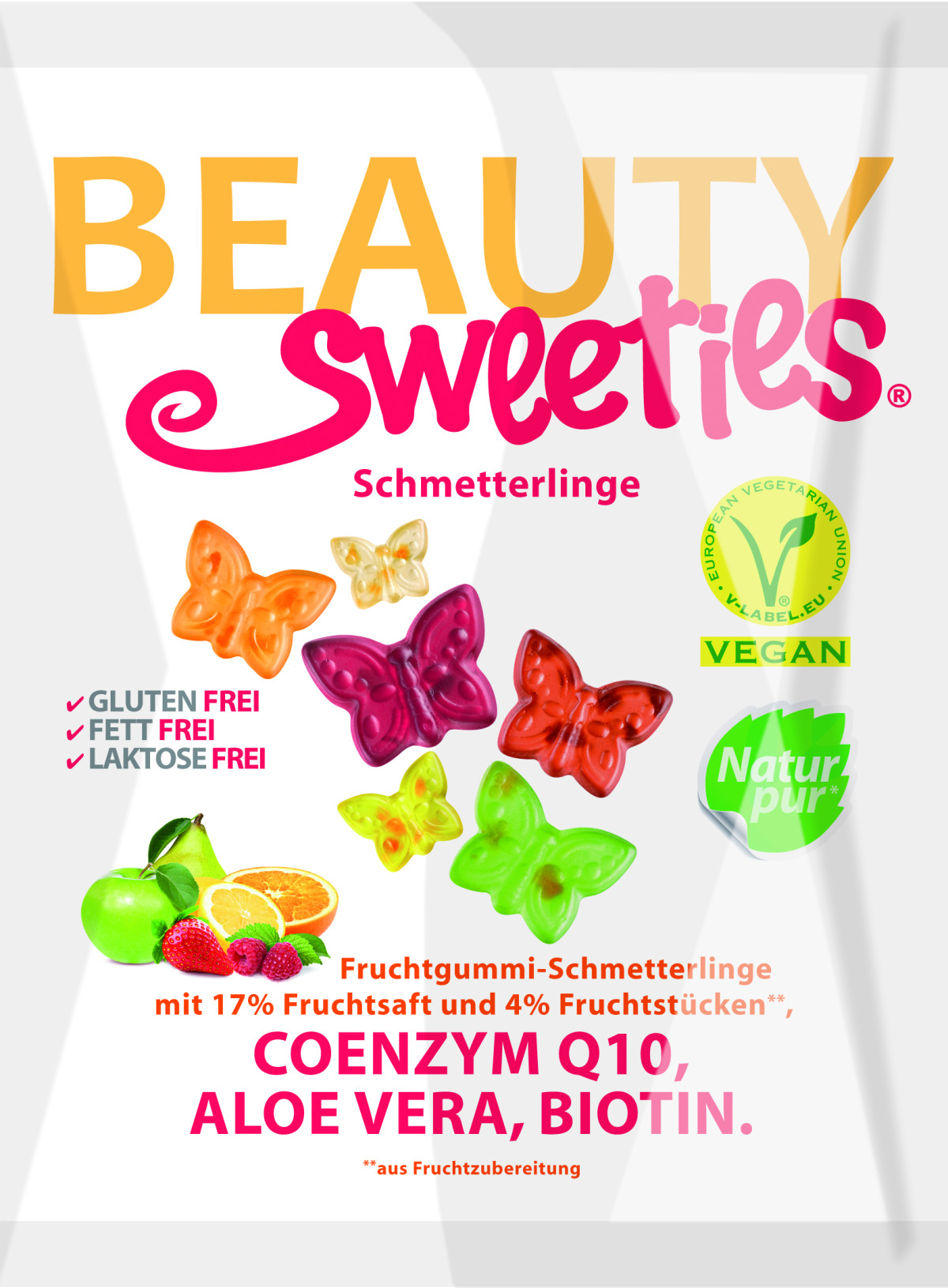 Beauty Sweeties vegán gumicukor. Vegán termék sosem volt még ennyire finom! Glutén-, zsír-, laktóz-, tartósítószer- és zselatinmentes. Mesterséges színezéket és ízfokozót nem tartalmaz.