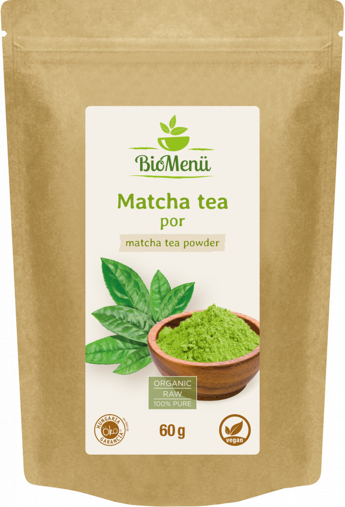 A BioMenü BIO MATCHA TEA por termékünk klasszikus kategóriájú (Classic Grade) zöldtea-port tartalmaz, amelyet a hagyományos japán tea-szertartásokon használnak majdnem egy évezrede. A por a camellia sinensis nevű tea leveleiből készül. A legkiválóbb hajtásokat szedik és szárítják, hogy finom őrölt port hozzanak létre. Egyedülálló, jellegzetesen keserű íze van. A matcha élelmiszer-összetevőként és természetes élelmiszerként is használható. A leveles teákkal szemben a matcha őrlemény teljesen feloldódik a vízben, így a lehető legnagyobb mértékben élvezhetjük különleges ízét és egészségügyi előnyeit. Nem tartalmaz adalékanyagokat és nem allergizál.