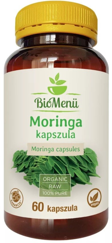 Összetevők: 100% bio moringa (moringa oleifera) levélpor; térfogatnövelő szer: mikrokristályos cellulóz; csomósodást gátló anyag: zsírsavak mono- és digliceridjei, szilícium-dioxid; kapszulahéj: hidroxipropil-metil-cellulóz