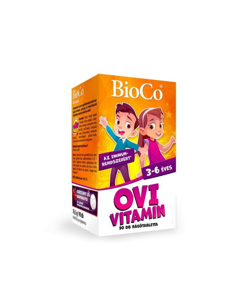 Vitaminokat és szerves vegyületformájú ásványi anyagokat tartalmazó, cseresznye ízű étrend-kiegészítő rágótabletta cukorral és édesítőszerekkel.