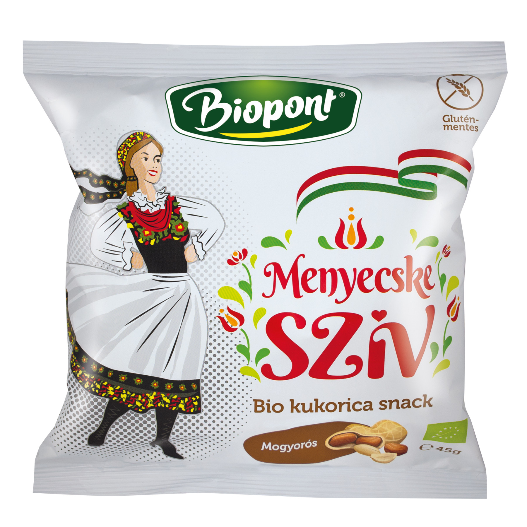 Biopont bio kukorica snack menyecske szív mogyorós ízesítéssel 45 g