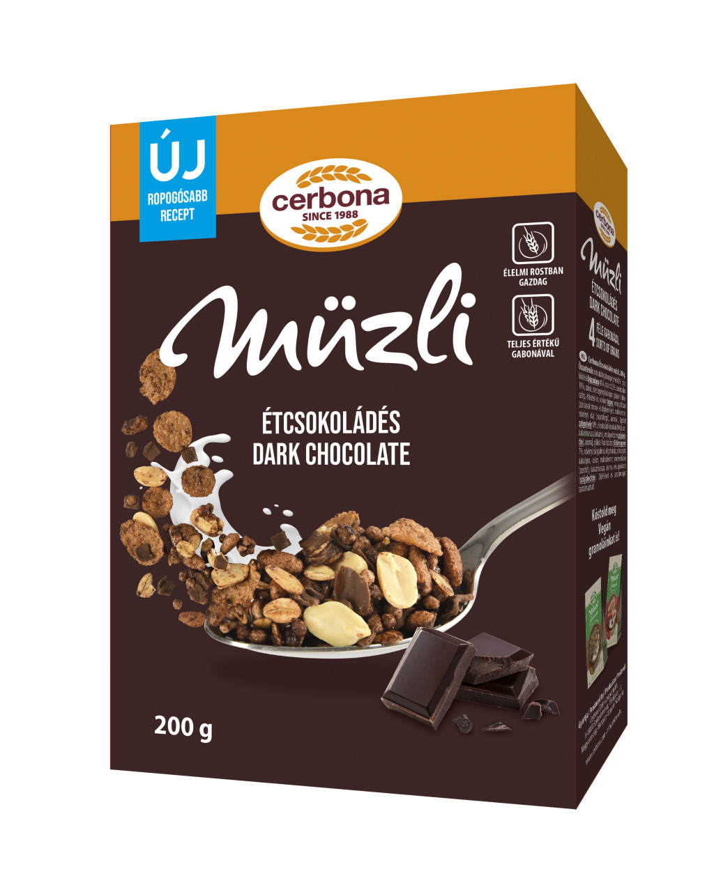 Összetevők: extrudált gaponapelyhek 40% (teljes kiörlésű búzadara 43%, rizsliszt 26%, kukoricadara 19%, cukor, zsírszegény kakaópor, glükóz-fruktózszörp, étkezési só, sovány tejpor, emulgeálószer (zsírsavak mono- és digliceridjei), maltodextrin, növényi olaj (napraforgó), aromák), lapított zabpehely 18%, étcsokoládé darabkák 10% (cukor, kakaómassza, kakaóvaj, emulgeálószer (szójalecitin), aroma), glükóz-fruktózszörp, földimogyoró 7%, növényi zsír (pálma), oligofruktóz, zsírszegény kakaópor, cukor, maltodextrin, nedvesítőszer (szorbit), kakaómassza, aroma, emulgeálószer (szójalecitin).Dióféléket és szezámmagot tartalmazhat!