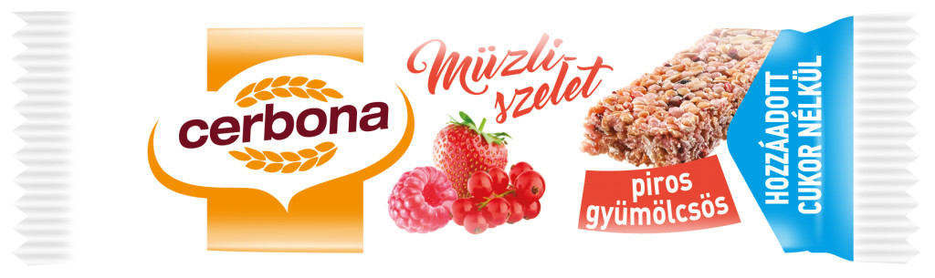 CERBONA SZELET CUKORM. PIROS GYÜMÖLCSÖS. Cukormentes müzliszelet.