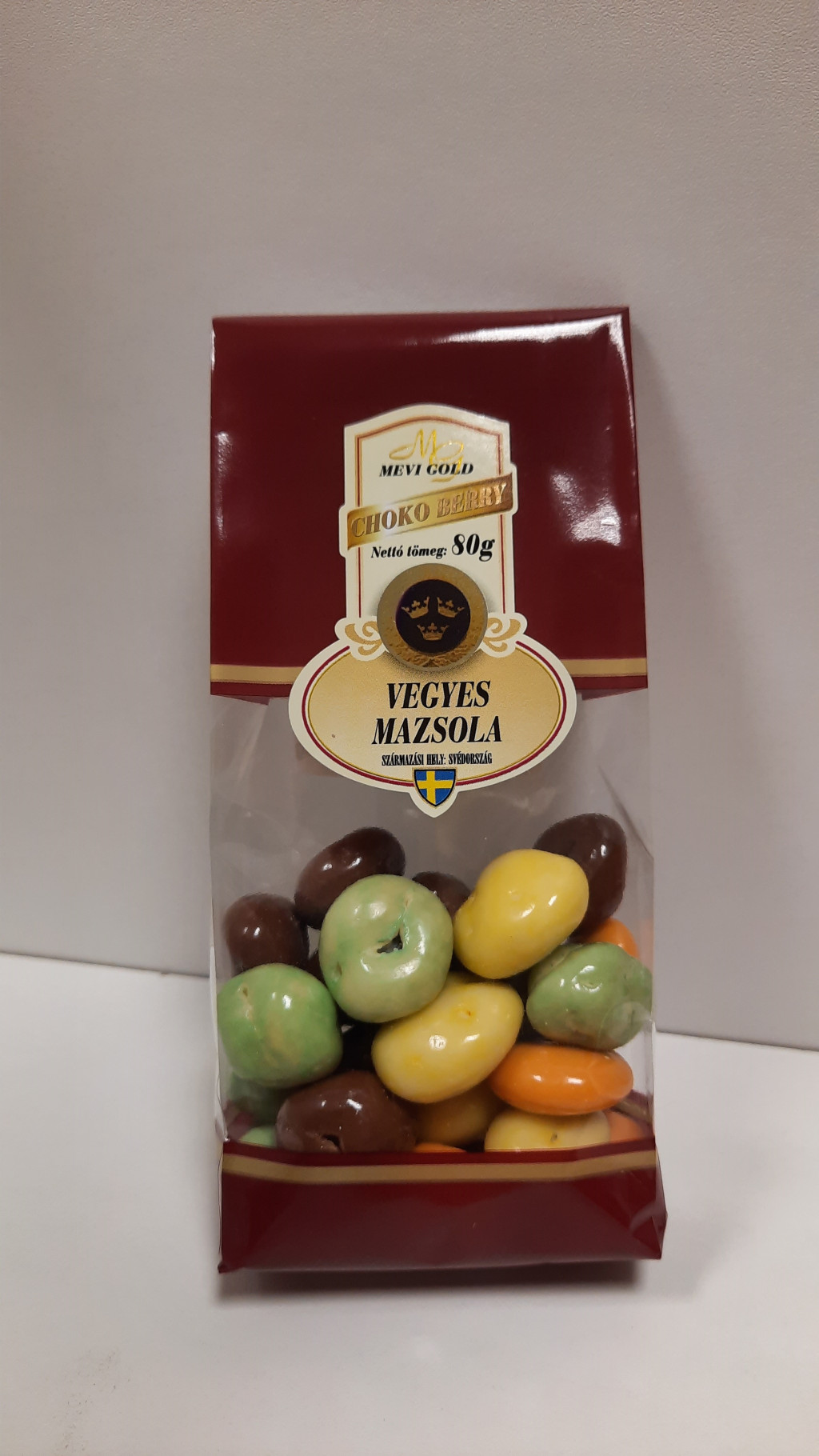 Tejcsokoládéval és ízesített (dinnyés, barackos, maracujás) fehércsokoládéval bevont mazsola