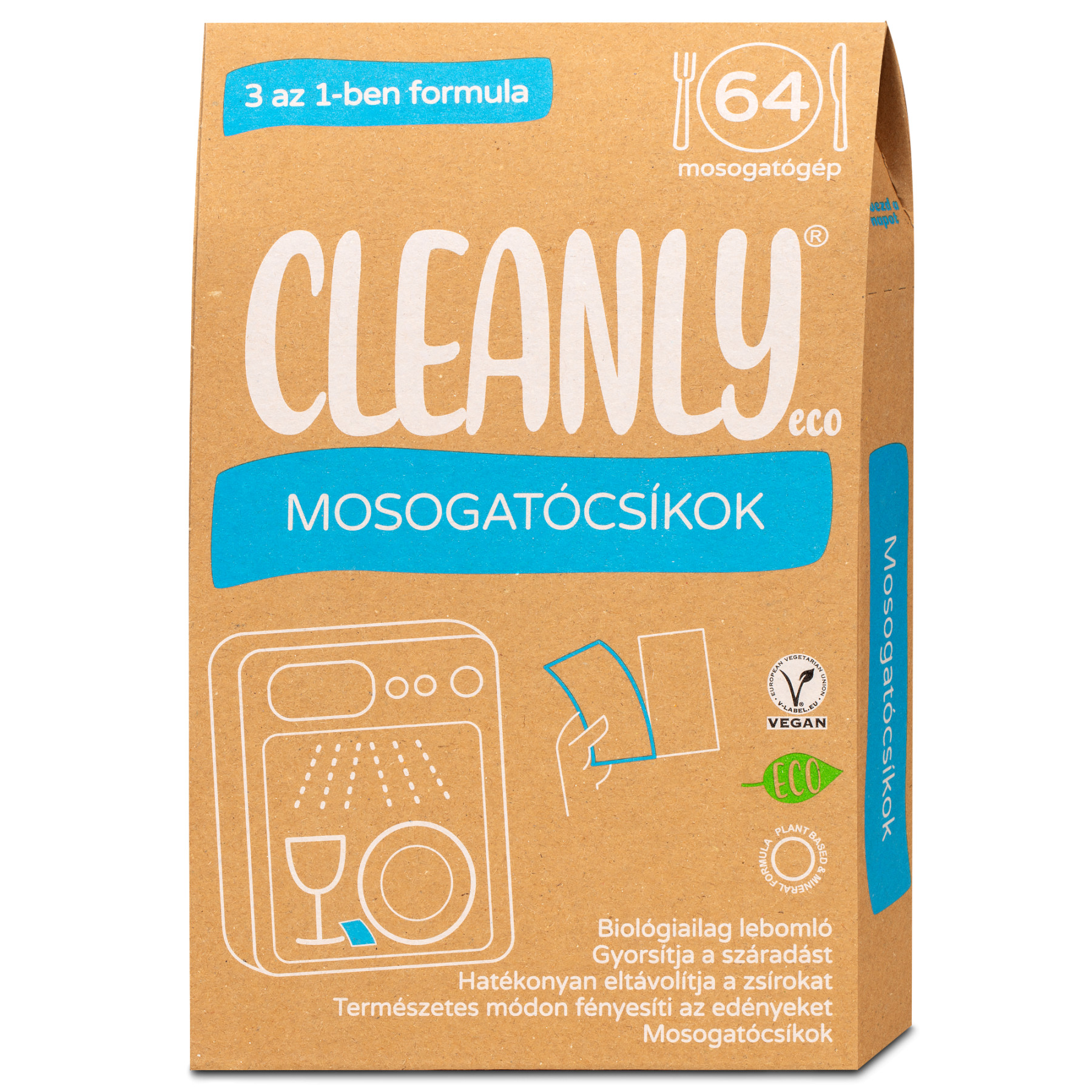 Cleanly Eco Mosogatócsíkok 3 az 1-ben formula - 64 db