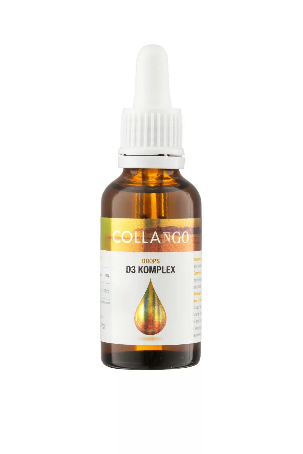 A Collango Drops D3 Komplex egy nagy dózisú vitamin készítmény. Kiváló minőségű DSM D3 vitamin és alga eredetű D3 vitamin (vegan) keverékéből áll, melyet vegyes tokoferolokkal (E-vitamin) stabilizáltunk. Mindez feloldva RSPO minősített MCT (közepes szénláncú zsírsavak trigliceridjei) olajban. Ez azért fontos, mert fenntartható gazdálkodásból származik és így megőrizhetjük közösen a vadon élő állatfajok élőhelyeit.