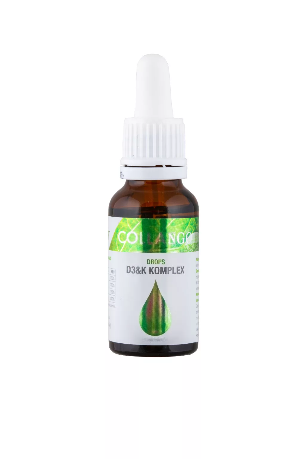 A Collango Drops D3+K Komplex egy nagy dózisú vitamin készítmény. Kiváló minőségű DSM D3-vitamin, alga eredetű D3-vitamin (vegan) és teljesen természetes, biotranszformációval előállított vegan K2-vitaminból áll melyet vegyes tokoferolokkal (E-vitamin) stabilizáltunk. Mindez feloldva RSPO minősített MCT (közepes szénláncú zsírsavak trigliceridjei) olajban feloldva. Ez azért fontos, mert fenntartható gazdálkodásból származik és így közösen megőrizhetjük a vadon élő állatfajok élőhelyeit.