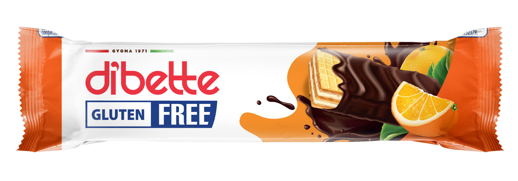 Dibette kakaós ét mártott, narancs ízű krém töltött ostya, fruktózzal gluténmentes 26 g