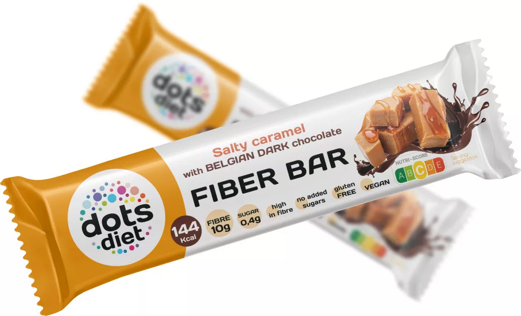 Megújult receptúrával!! Diétás sós karamella ízű rostszelet étcsokoládéba mártva.