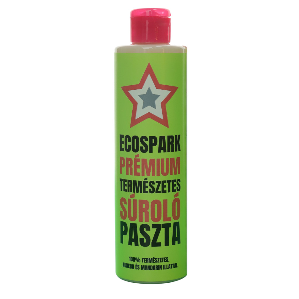 VIGYÁZAT: Az ECOSPARK súrolókrém természetesen dörzsölő hatású és használatakor kerülni kell a túlzott nyomást és dörzsölést a puha műanyag, alumínium, üveg vagy zománcozott felületeken. Ha bizonytalan vagy, először próbáld ki egy kis, nem feltűnő területen. Gyermekektől és háziállatoktól elzárva tartandó! Amennyiben kiömlene, rögtön töröld fel. A súrolókrémmel érintkező bőrt alaposan mosd meg.