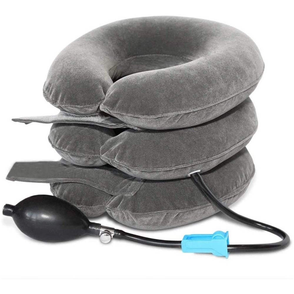 Felfújható nyaktámasz a nyaki terület kényelmes alátámasztására és tehermentesítésére. Három légkamrás kialakítása segíti a nyak természetes pozícióját, rendszeres használata támogatja a komfortérzetet és a mindennapi nyakápolást.