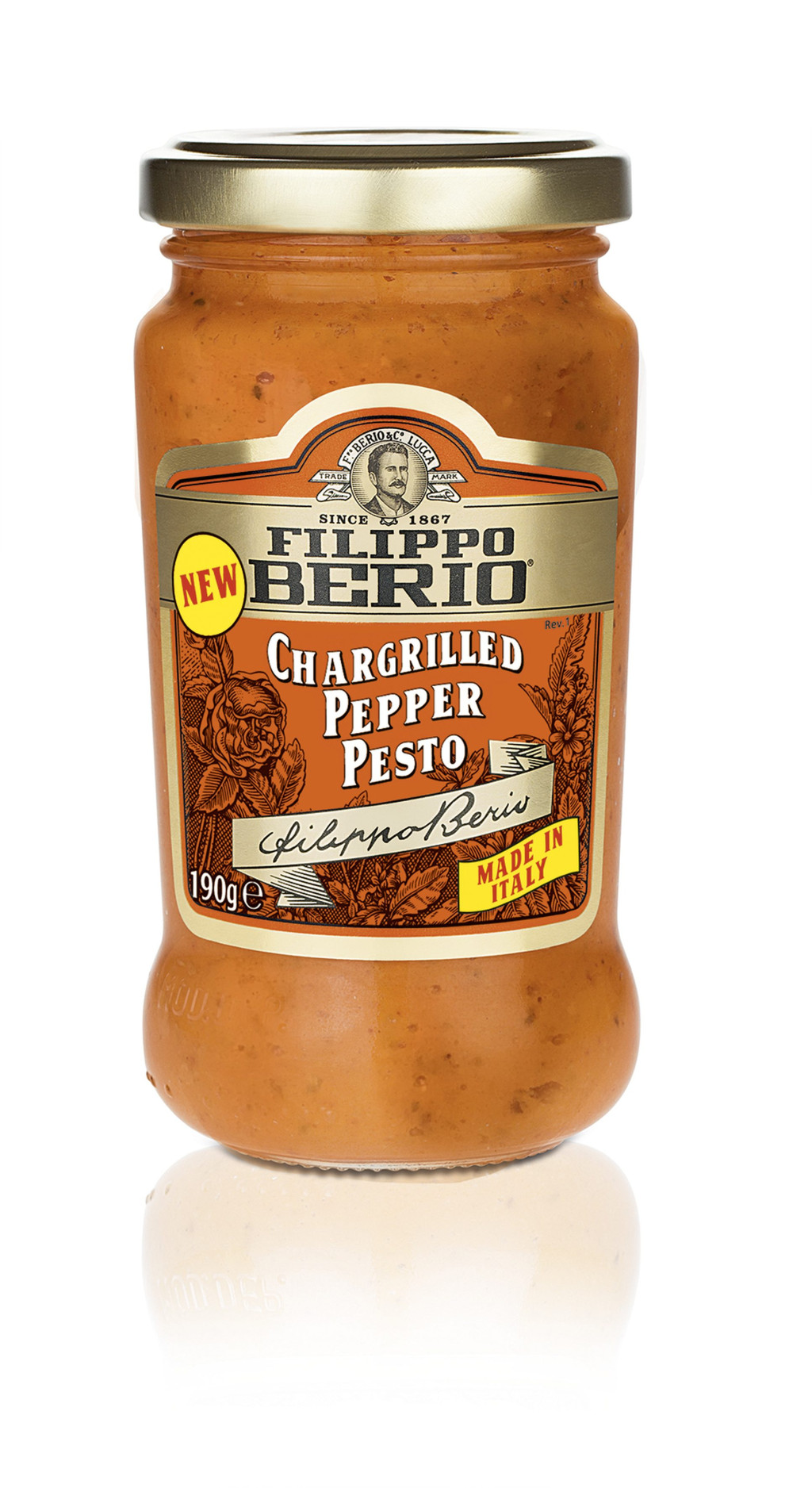 Összetevők: faszénparázson grillezett piros paprika (25%), piros paprika (25%), olívaolaj, napraforgó olaj, faszénparázson grillezett sárga paprika (5%),kesu dió, bazsalikom, extra szűz olívaolaj, Grana Padano sajt PDO (3%)(tej, só, oltóanyag), burgonyapehely, búza rost, só, tejsavó fehérje, feketebors, savanyúságot szabályozó anyag: E 270.