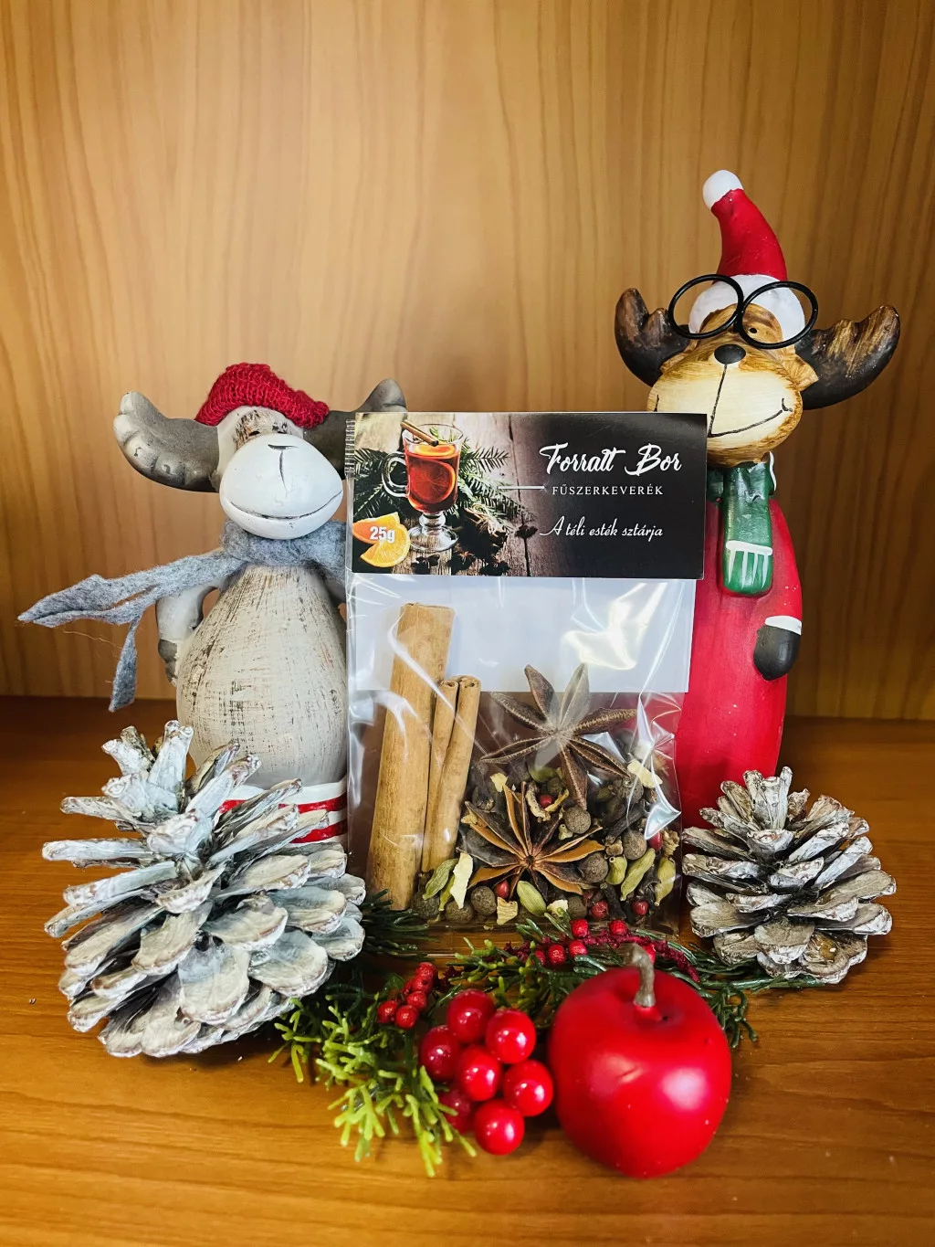 Összetevők: fahéj rúd, csillagánizs, szegfűbors, szegfűszeg, kardamom, feketebors, narancshéj, rózsabors