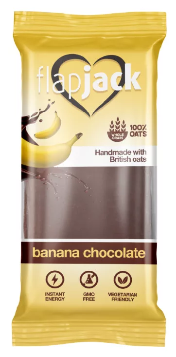 Banánchips-szel készül, csokoládé ízű bevonattal a tetején. A FlapJack szeletek magas zab- és rosttartalmának köszönhetően kiváló kiegészítője az egészséges táplálkozásnak. Vegetáriánusok számára is ajánlott.