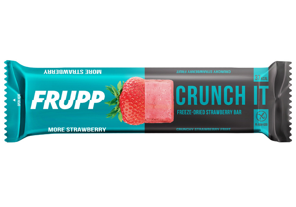 Maximális íz - minimális kalória! Frupp - egy finom és egészséges snack. A maga nemében az első, fagyasztva szárított gyümölcsből készült szelet, rendkívül intenzív eper ízzel. Egy szelet mindössze 37 kcal-t tartalmaz és 7% rostot, a nyári gyümölcsök lédús, édes íze pedig tökéletesen kielégíti az édesség utáni vágyat.