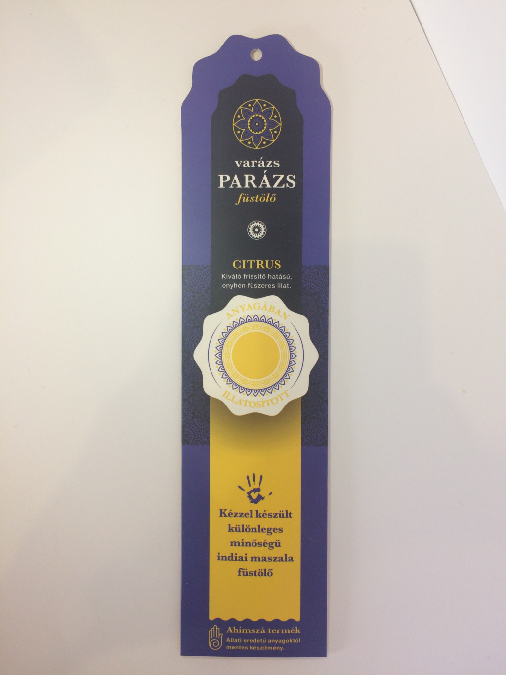 A Citrus kiváló frissítő hatású, enyhén fűszeres illat. Varázs Parázs füstölőink a gondos válogatás eredményeként kizárólag természetes anyagokat tartalmazó minőségi termékek. Füstölőinket a legnemesebb virágolajokból, gyógyfüvekből és fűszerekből kézzel gyúrják, aromaterápiás hatásuk is kiváló. Természetes hatóanyagaik pozitívan hatnak az emberi pszichére és elősegítik a relaxációt, valamint a kiegyensúlyozott lelkiállapot elérését. Kellemes illatuk közömbösíti a dohányfüstöt, távol tartja a szúnyogokat.