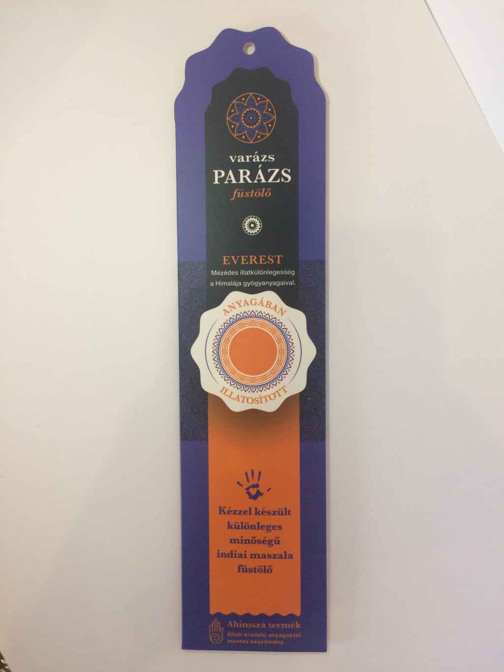 Az Everest mézédes illatkülönlegesség a Himalája gyógynövényeivel. Varázs Parázs füstölőink a gondos válogatás eredményeként kizárólag természetes anyagokat tartalmazó minőségi termékek. Füstölőinket a legnemesebb virágolajokból, gyógyfüvekből és fűszerekből kézzel gyúrják, aromaterápiás hatásuk is kiváló. Természetes hatóanyagaik pozitívan hatnak az emberi pszichére és elősegítik a relaxációt, valamint a kiegyensúlyozott lelkiállapot elérését. Kellemes illatuk közömbösíti a dohányfüstöt, távol tartja a szúnyogokat.