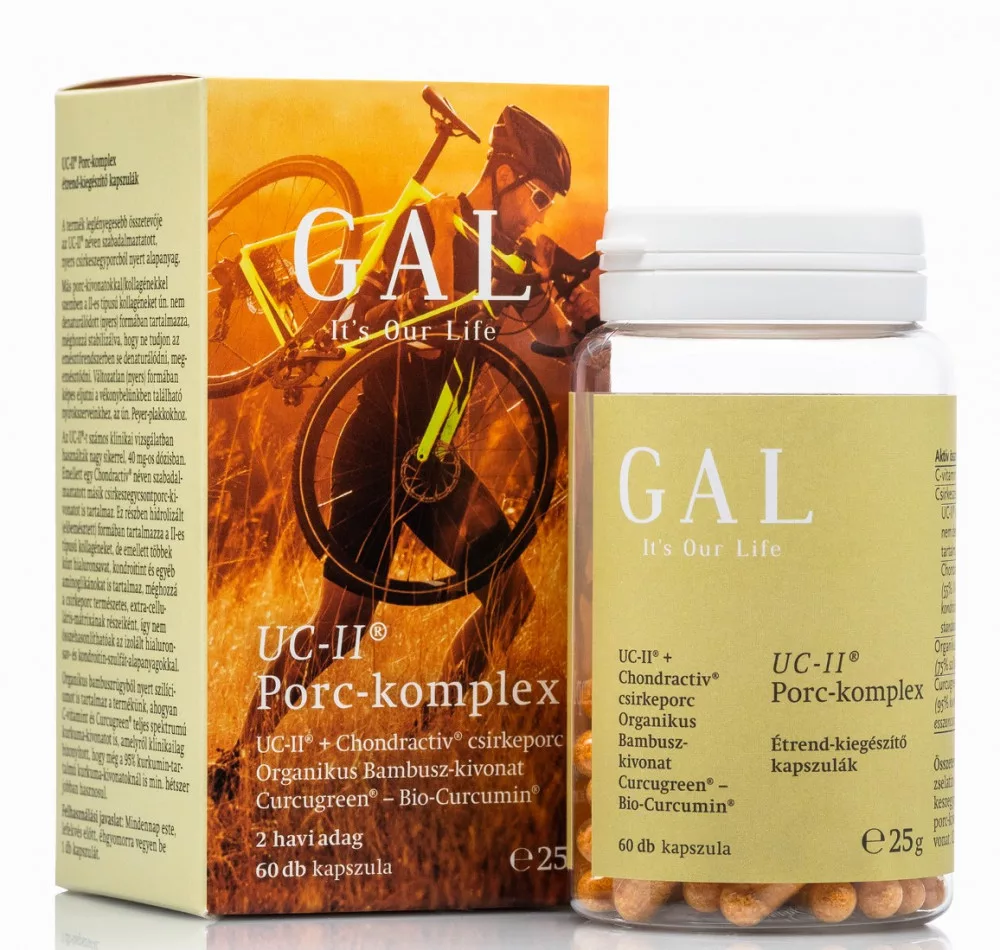 Az UC-II®-t számos klinikai vizsgálatban használták nagy sikerrel, 40 mg-os dózisban. Emellett egy Chondractiv® néven szabadalmaztatott másik csirkeszegycsontporc-kivonatot is tartalmaz. Ez részben hidrolizált (előemésztett) formában tartalmazza a II-es típusú kollagéneket, de emellett többek közt hialuronsavat, kondroitint és egyéb aminoglikánokat is tartalmaz, méghozzá a csirkeporc természetes, extra-celluláris-mátrixának részeiként, így nem összehasonlíthatóak az izolált hialuronsav- és kondroitin-szulfát-alapanyagokkal. Organikus bambuszrügyből nyert szilíciumot is tartalmaz a termékünk, ahogyan C-vitamint és Curcugreen® teljes spektrumú kurkuma-kivonatot is, amelyről klinikailag bizonyított, hogy még a 95% kurkumin-tartalmú kurkuma-kivonatoknál is min. hétszer jobban hasznosul.