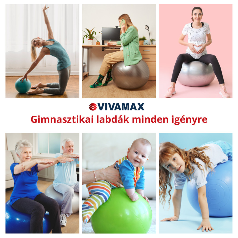 A vivamax gimnasztikai labdák négyféle színben (pink, ezüst, lila és zöld) kaphatóak, és a színek más-más méretet jelölnek: