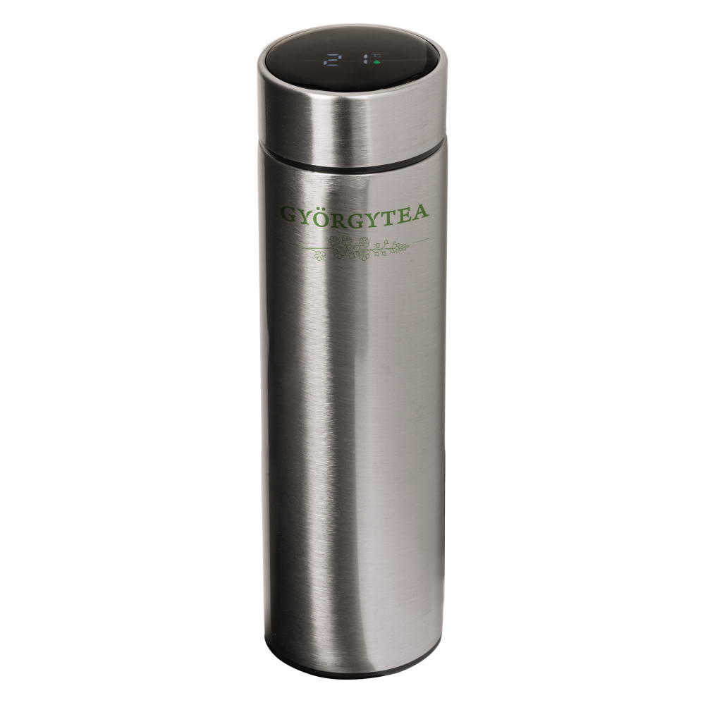Györgytea Rozsdamentes termosz 0,5l hőmérséklet kijelző, beépített szűrő