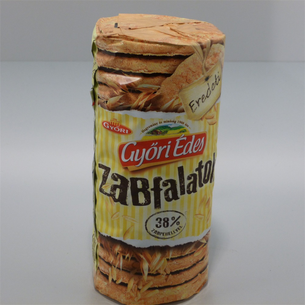 GYŐRI ÉDES ZABFALATOK. Győri Édes Zabfalatok zabpehellyel és teljes kiőrlésű. búzával készült. 30%-os zabpehely tartalmának köszönhetően. finom és omlós.