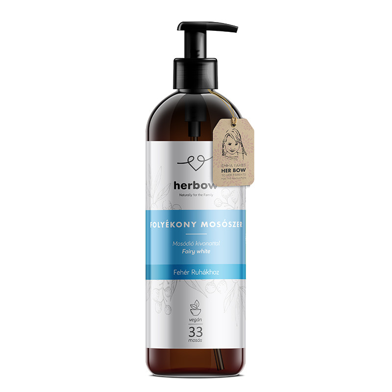 Kimagasló mosóhatás értékes növényi alapanyagokból, szövetkárosodás nélkül. Herbow folyékony mosószerek praktikus, pumpás kiszereléssel, fehér ruhákhoz. 12 % mosódió-kivonattal és bio-enzimek felhasználásával. Foszfát-mentes, - klórmentes, biológiailag jól lebomló vegán termékek.