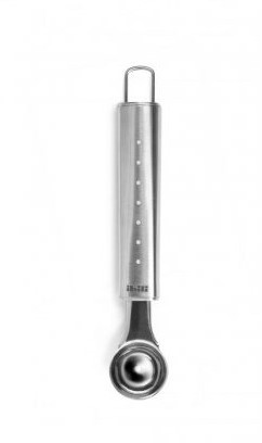 A gyümölcs és zöldség vájó 17cm hosszú, 3cm-es átmérőjű, rozsdamentes fémből készült, mosogatógépben mosható.