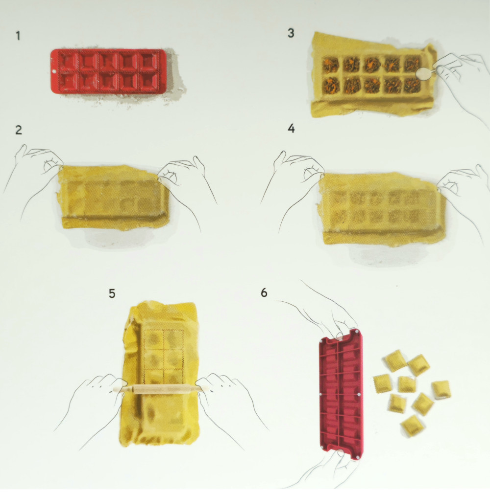 Egy nélkülözhetetlen forma ravioli készítéshez, a tradícionális olasz töltött tésztához. Kerek formával.