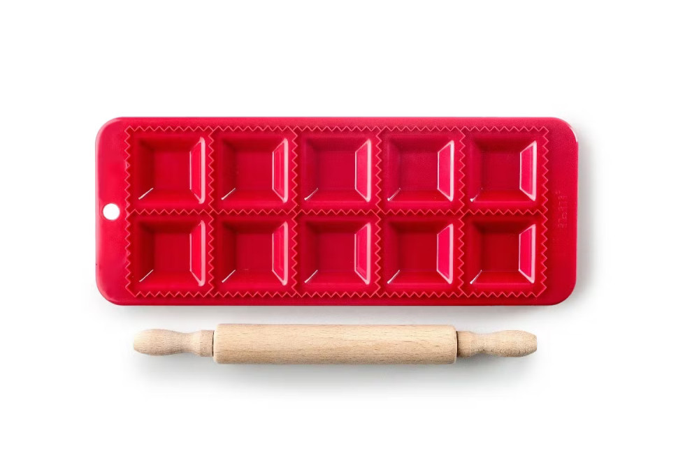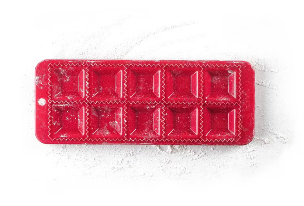 Egy nélkülözhetetlen forma ravioli készítéshez, a tradícionális olasz töltött tésztához. Négyzetes formával.