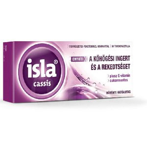 ingert, és enyhíti a rekedtséget. 4 éves kortól adható, cukormentes, feketeribizli ízű torokpasztilla, amely C vitamint is tartalmaz. Az isla® cassis összetevői balzsamként védik a torok és a