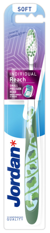 A Jordan Individual Reach fogkefe különböző egyedi mintákkal és színekben kapható. Kicsi fej és nyél, amely elősegíti a könnyű és hatékony fogmosást. A fogkefe fejének kialakítása lehetővé teszi, hogy a nehezen elérhető zugokat is hatékonyan meg tudjuk tisztítani.