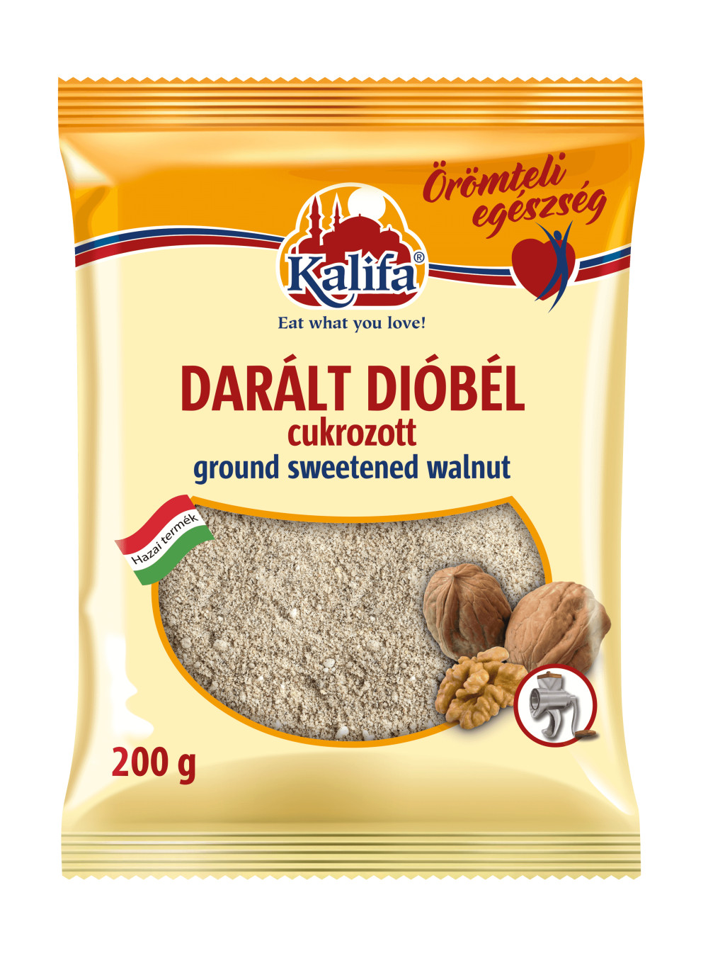 Összetevők: dióbél 60%, cukorliszt (cukor, burgonyakeményítő) 40%