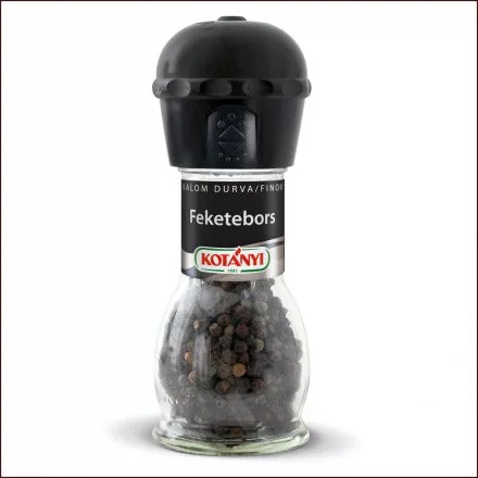 "Húsokhoz, halakhoz, zöldségekhez, levesekhez, szószokhoz, öntetekhez. A feketebors a fűszerek világának sztárja, hiszen majdnem minden ételhez illik erőteljes, pikáns íze. A KOTÁNYI Feketebors aromákban, illóolajokban gazdag, így keveset kell belőle használni a kellemes, borsos íz eléréséhez. A termék gluténtartalmú gabonaféléket, tojást, tejet (laktóz), zellert, szóját, mustárt és szezámmagot is felhasználó gyártóüzemben készült. Száraz helyen tartandó. Tápértéktartalom 100g-ban: Energia 1293 kJ/307 kcal Zsír 1,5 g ebből telített zsírsavak 0,5 g Szénhidrát 52,5 g Ebből cukor <0,5 g Fehérje 11 g Só 0 g "