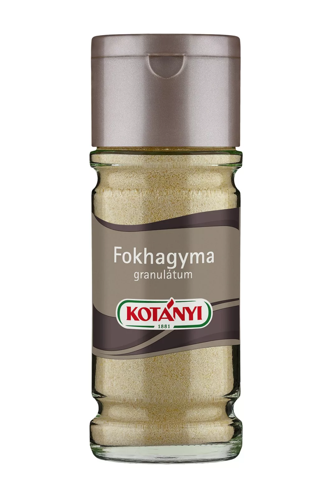 Összetéveszthetetlen íz: A fokhagyma pikáns és kissé édeskés illatú, kellemesen csípős fűszer. A Kotányi Fokhagyma granulátumban tökéletesen érvényesül a frissen zúzott fokhagyma erőteljes íze. Összetevők: Fokhagyma granulátum, szárított