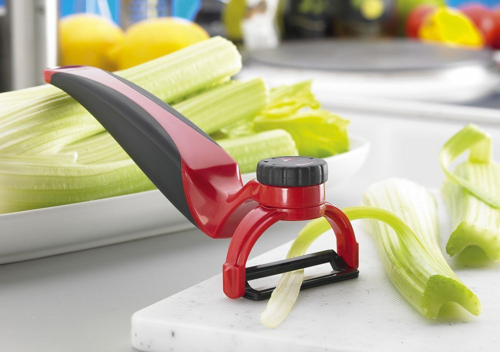 A Kyocera CP-20 hámozó forgatható fejjel rendelkezik, amely lehetővé teszi, hogy a zöldség formájához beállítsunk egy tetszőleges dőlés szöget. A vágófelület penge része kerámiából készül. A kerámia pengének köszönhetően az eszköz rendkívül éles, az élét hosszú ideig megtartja, könnyű, könnyen tisztítható, nem rozsdásodik és vegyileg közömbös. A forgatható fejnek köszönhetően balkezesek is kényelmesen tudják használni. Az él hossza 4 cm, a nyél színe piros és fekete. Bár mosogatógépben mosható, a késekhez hasonlóan azt itt sem ajánljuk.
