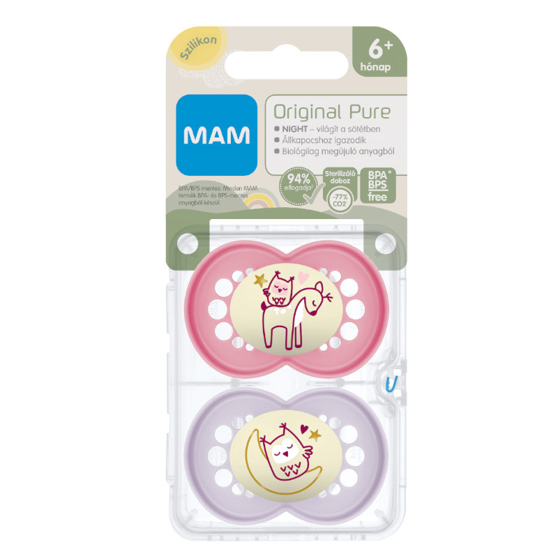 • MAM Original PURE: a MAM első klímasemleges cumija, biológialag megújuló alapanyagból, melyet fogorvosokkal és gyermekgyógyászati szakértőkkel együttműködve fejlesztettek ki.