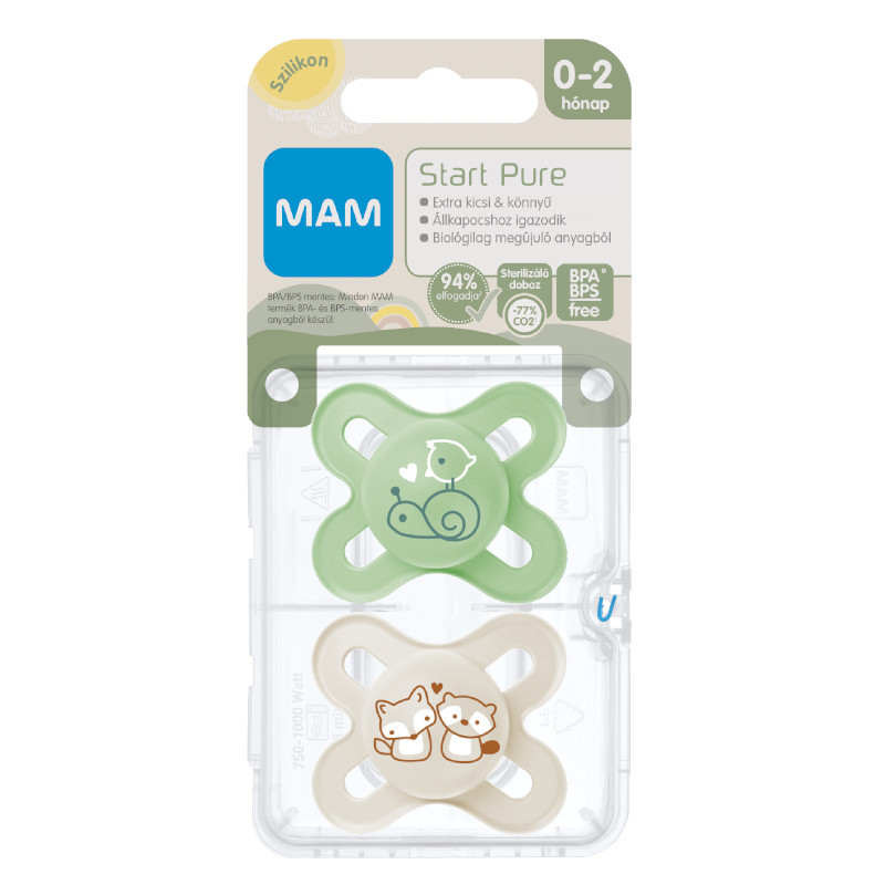 • MAM Original PURE: a MAM első klímasemleges cumija, biológialag megújuló alapanyagból, melyet fogorvosokkal és gyermekgyógyászati szakértőkkel együttműködve fejlesztettek ki.