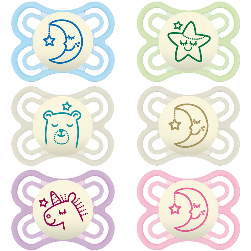 • Világít a sötétben - ez megkönnyíti a kicsiknek és a szülőknek, hogy megtalálják a cumit éjszaka is