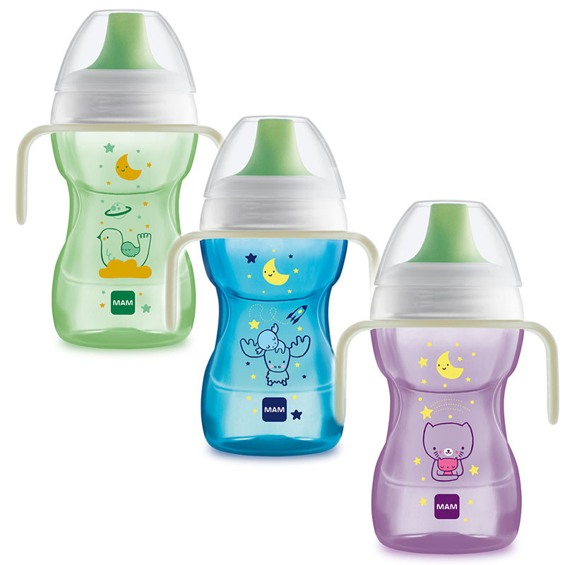A MAM Fun to Drink Night ivópohárral a gyermek már az önálló ivást tanulja. A kemény ivócsőrnek köszönhetően segít a rendes pohárra való könnyű áttérésre.