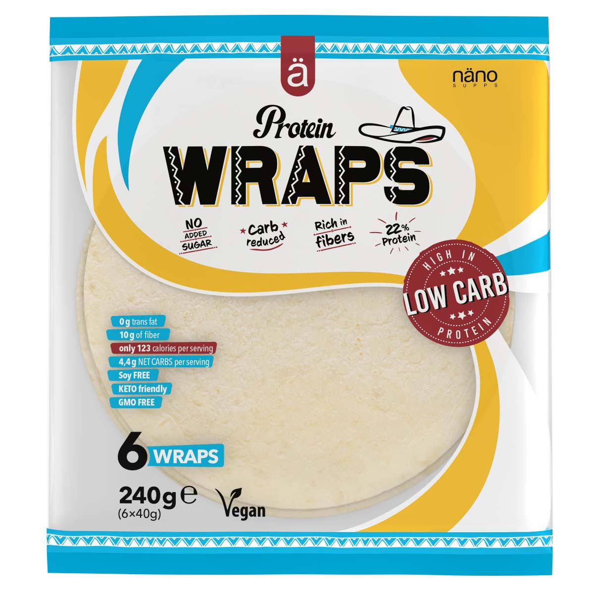 A NanoSupps Protein Wrap megoldást nyújthat arra, hogy akkor is nyugodtan, akár napi szinten fogyassz tortillában készített ételeket, ha igazán precízen odafigyelsz a szénhidrátbeviteledre, hiszen a termék az általános wrap-ekhez képest 70%-al kevesebb szénhidrátot tartalmaz!