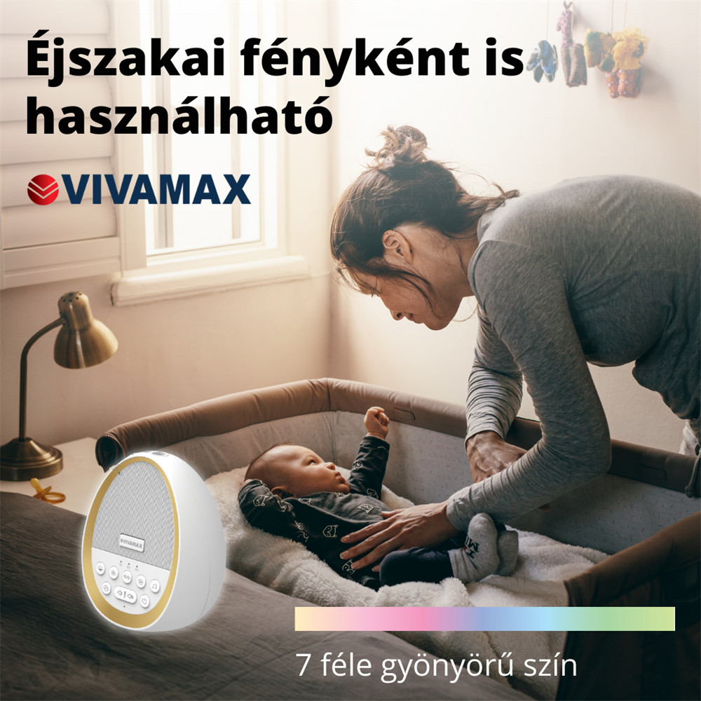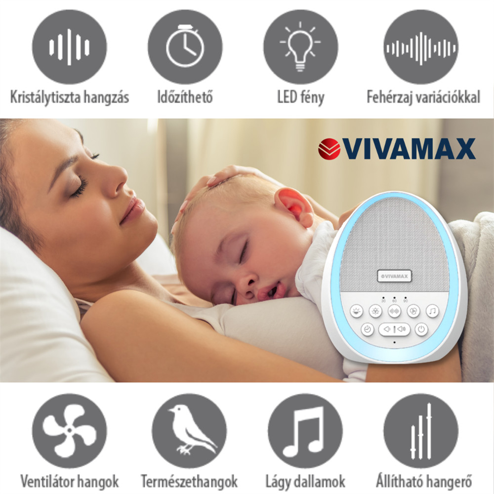 A hangok és dallamok típusonként választhatók: 7 féle fehér zaj; 7 féle ventilátor hang; 15 féle természethang és dallam